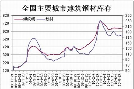 由图可见,截止7月9日全国主要城市的线材(3983,1.00,0.03%)库存总量为170.352万吨,比上周减少4.929万吨;比去年同期增加82.432万吨,同比上涨93.76%。螺纹钢库存量为634.703万吨,比上周减少12.418万吨;比去年同期增加314.23万吨,同比上涨98.05%,均处于历史高位。